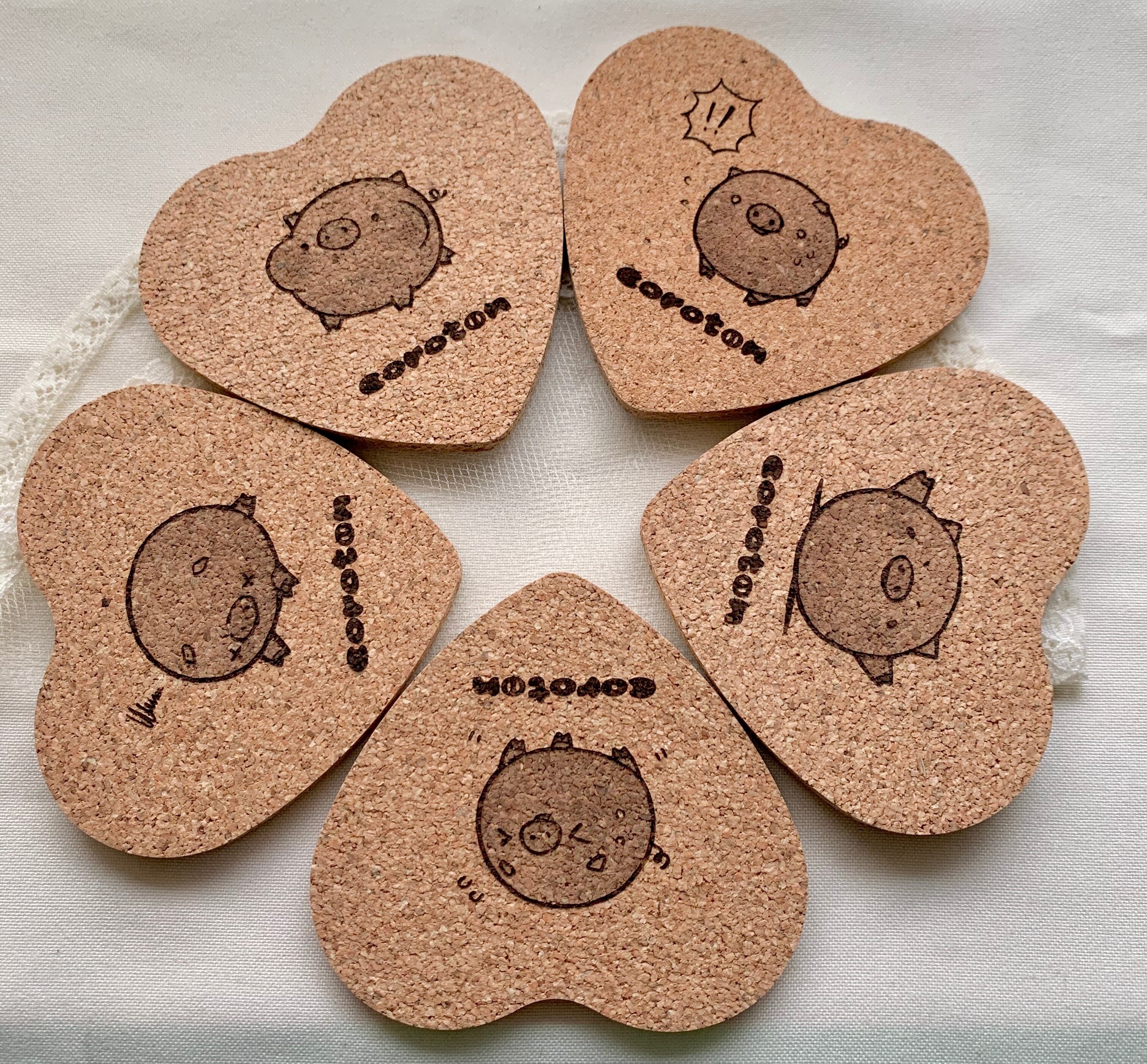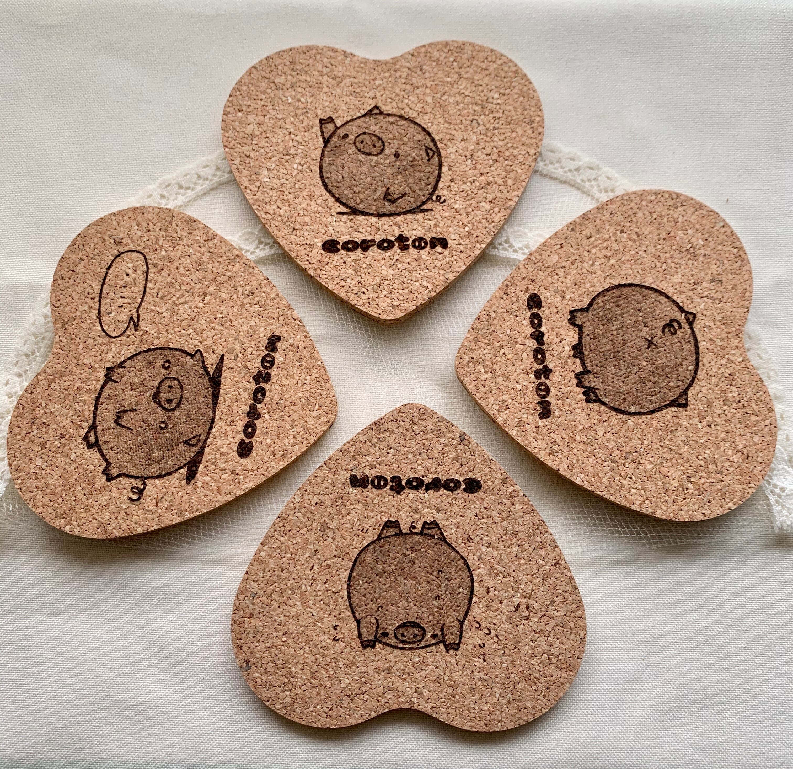コースター2枚入り(コルク:ハート)(ころとん)